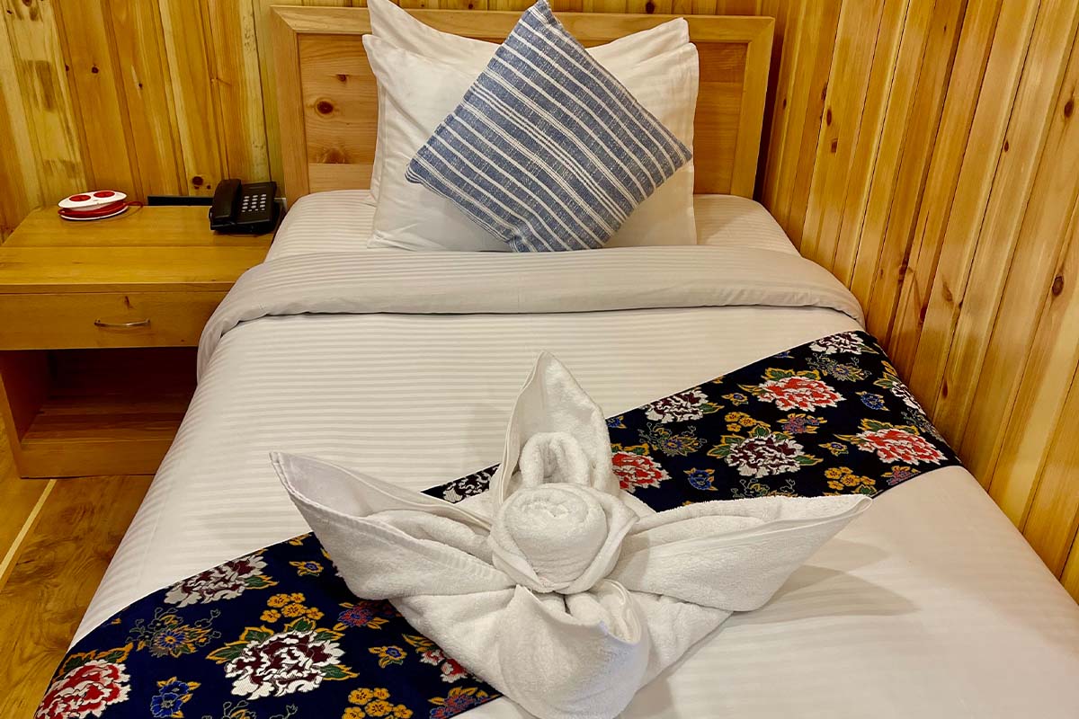 Enjoy the comfort of a twin bed for Nu. 2500 per night, where relaxation meets style.